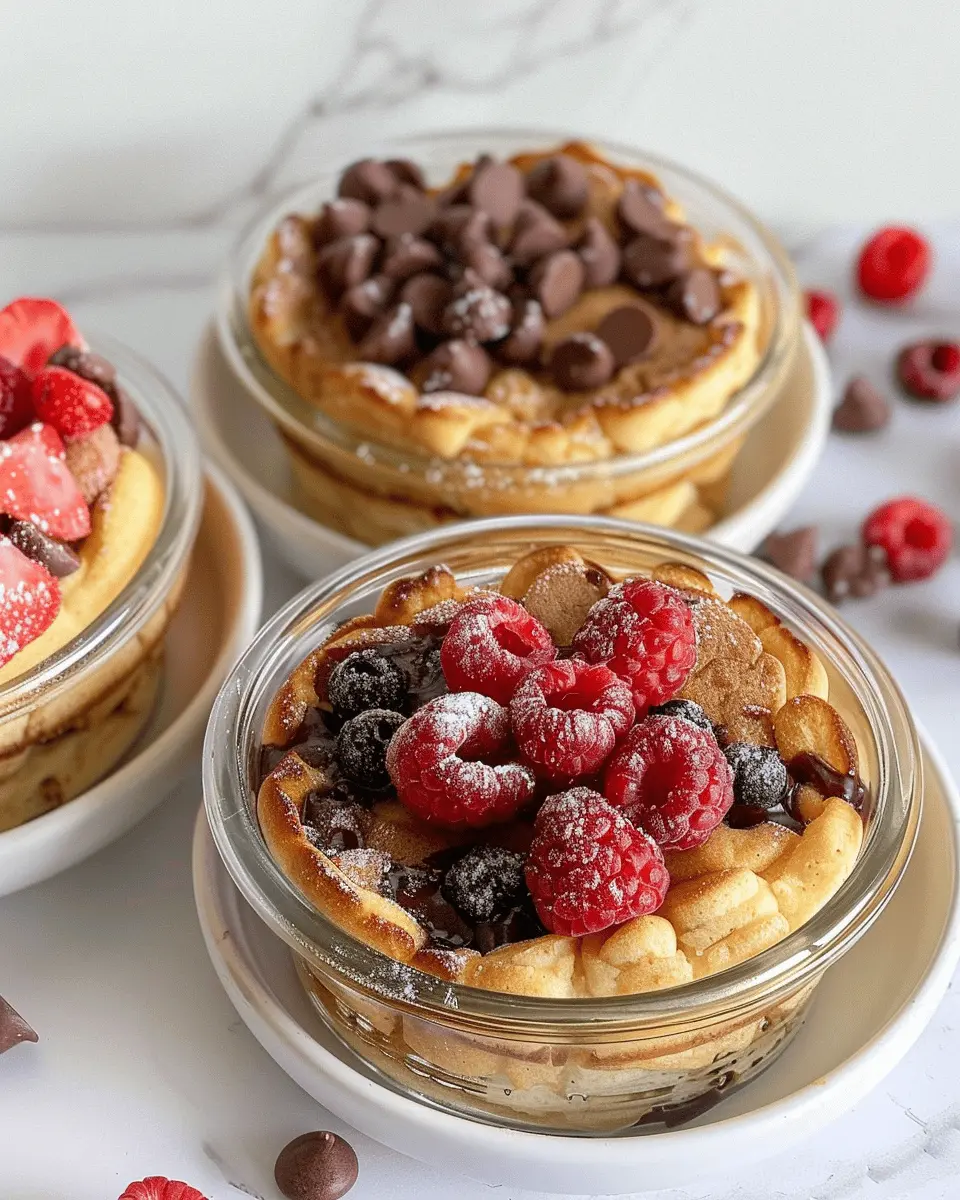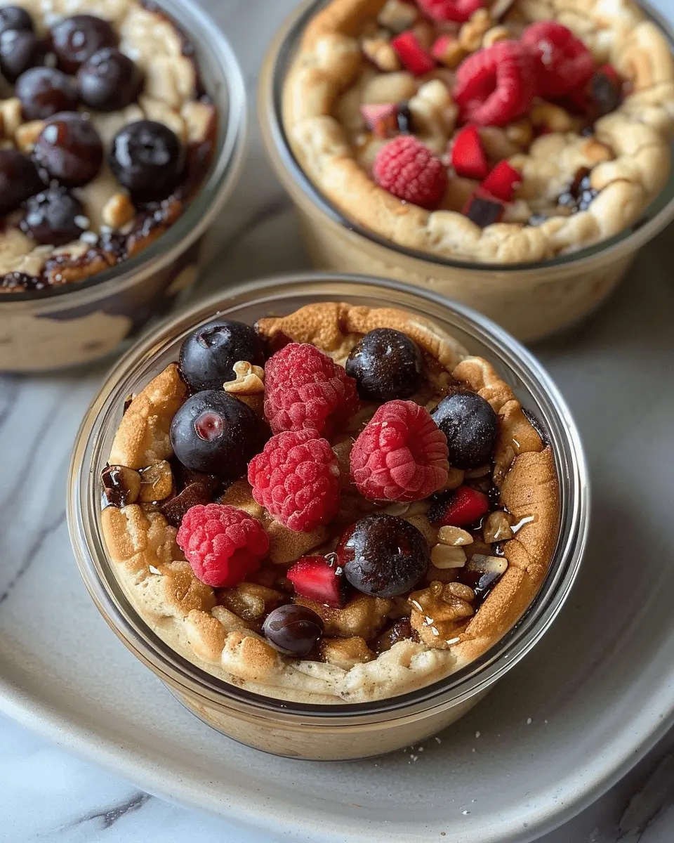 When it comes to baked protein pancake bowls, the right toppings can transform them into a gourmet experience. Think outside the box with options like: