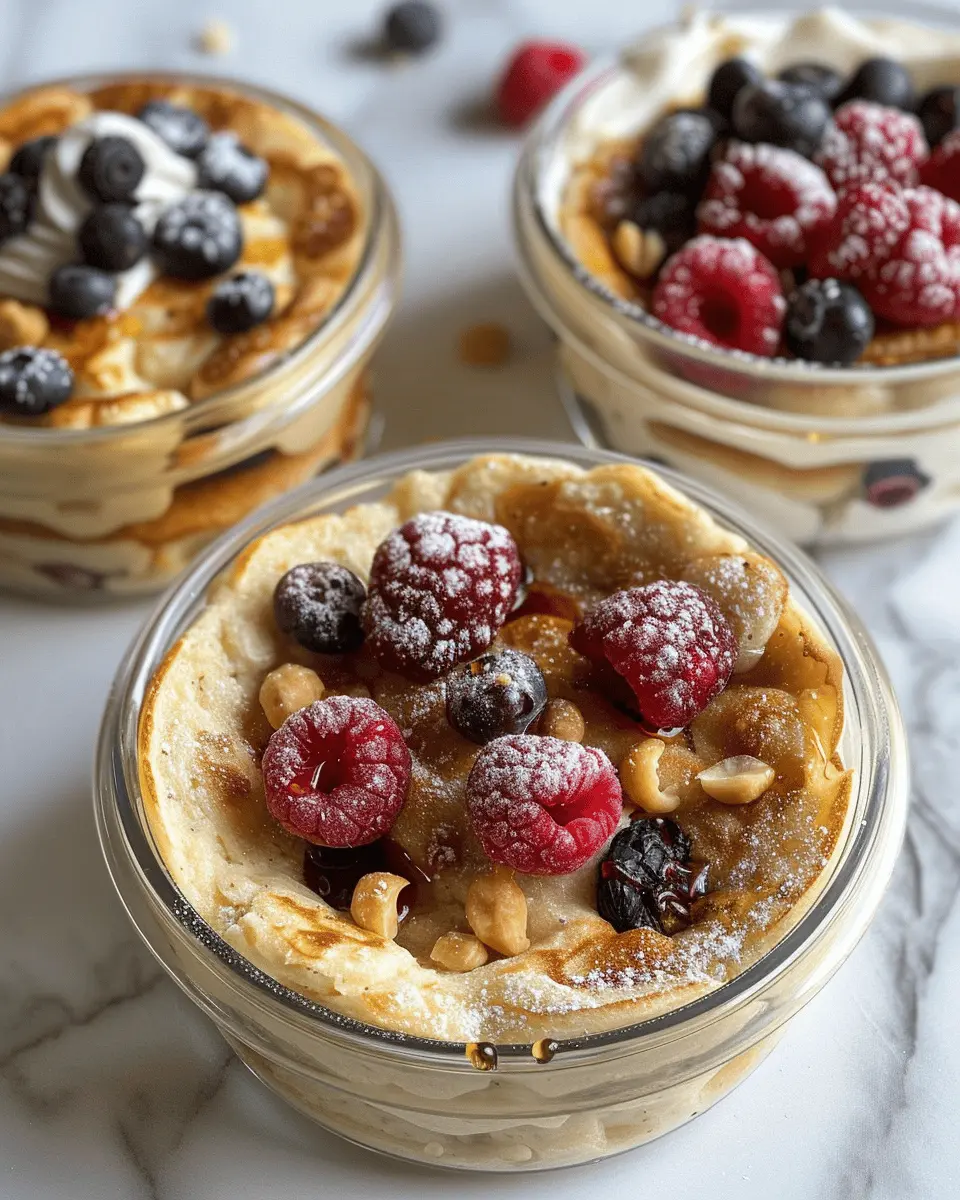 When it comes to baked protein pancake bowls, the flavor possibilities are nearly endless! Here are a couple of delightful variations that you can whip up for breakfast or a satisfying snack.