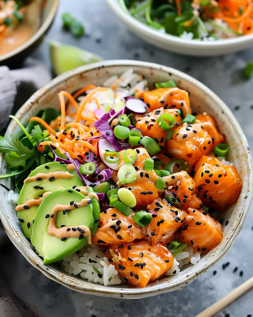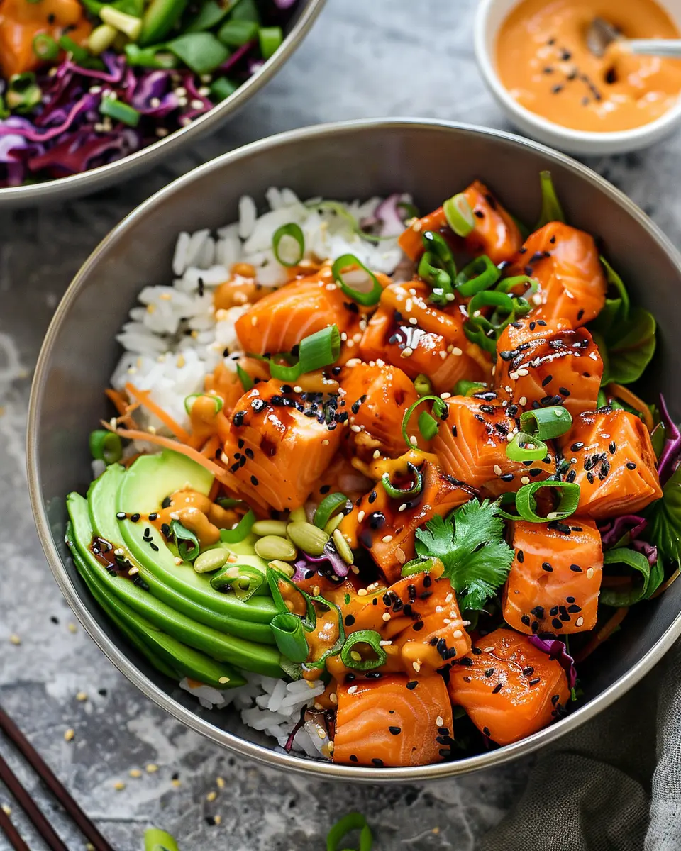 Step-by-Step Preparation of Bang Bang Salmon Bites Bowls