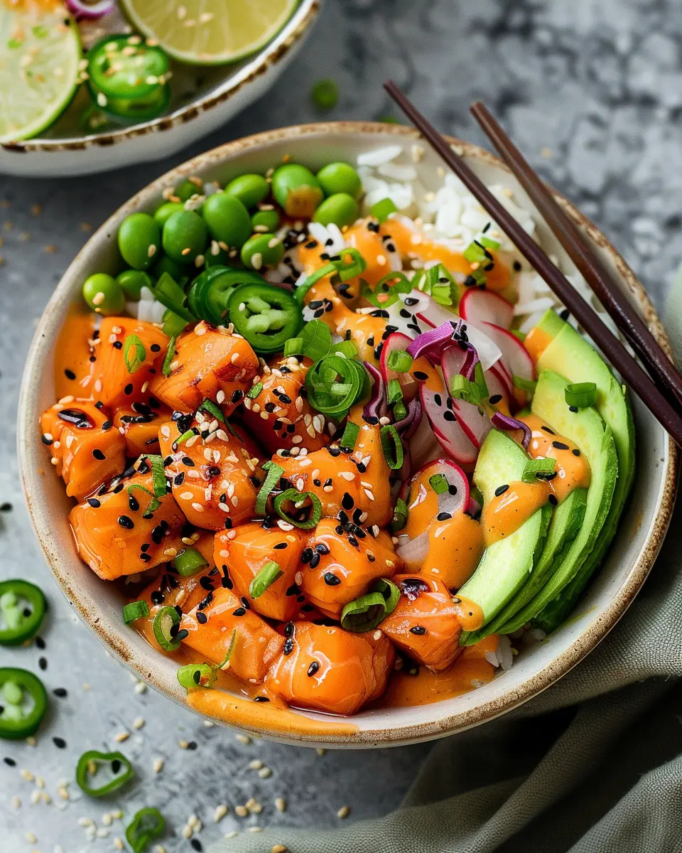 An essential component that takes these bowls to the next level is the Bang Bang Sauce. It’s sweet, spicy, and creamy—an absolute game changer!