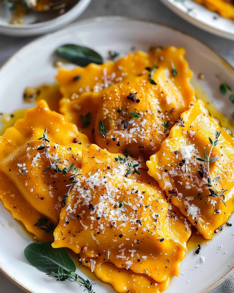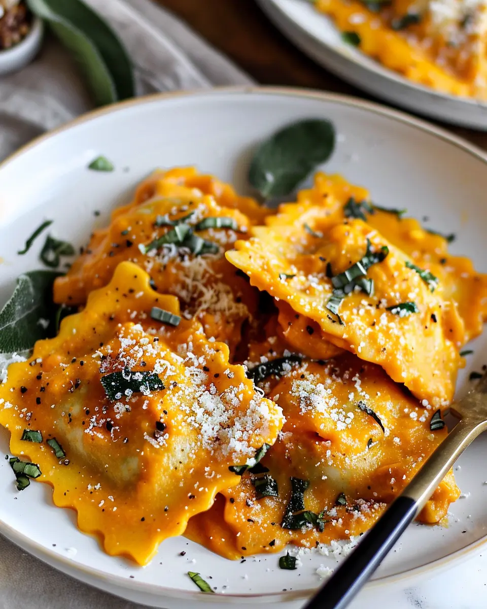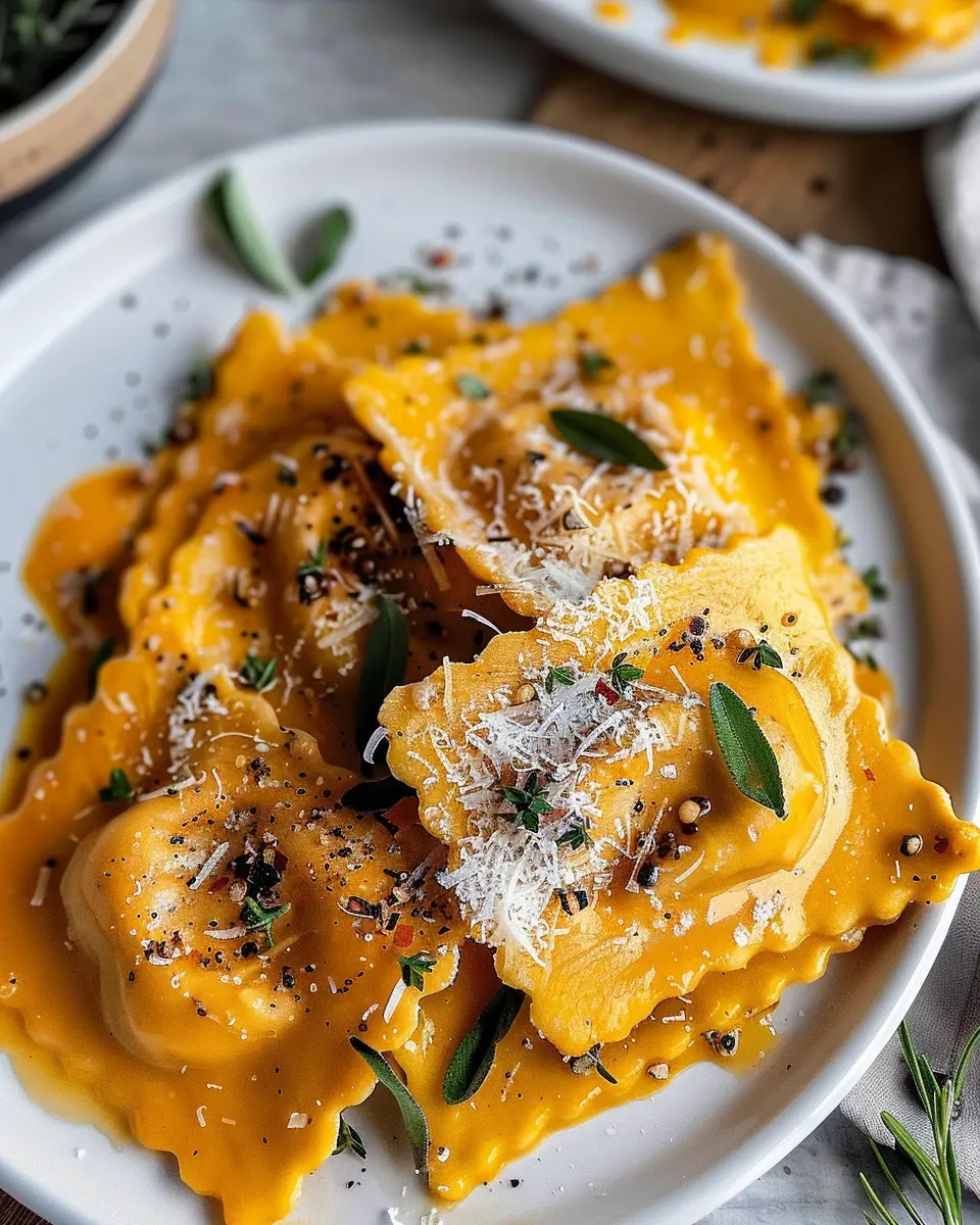 • Savory Sauce: Traditional sage brown butter or a creamy Alfredo sauce can highlight the ravioli’s sweetness. Check out this simple butter sauce recipe for a tasty option.