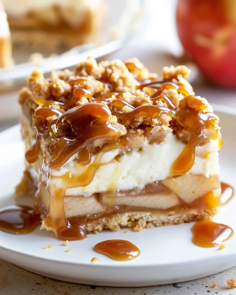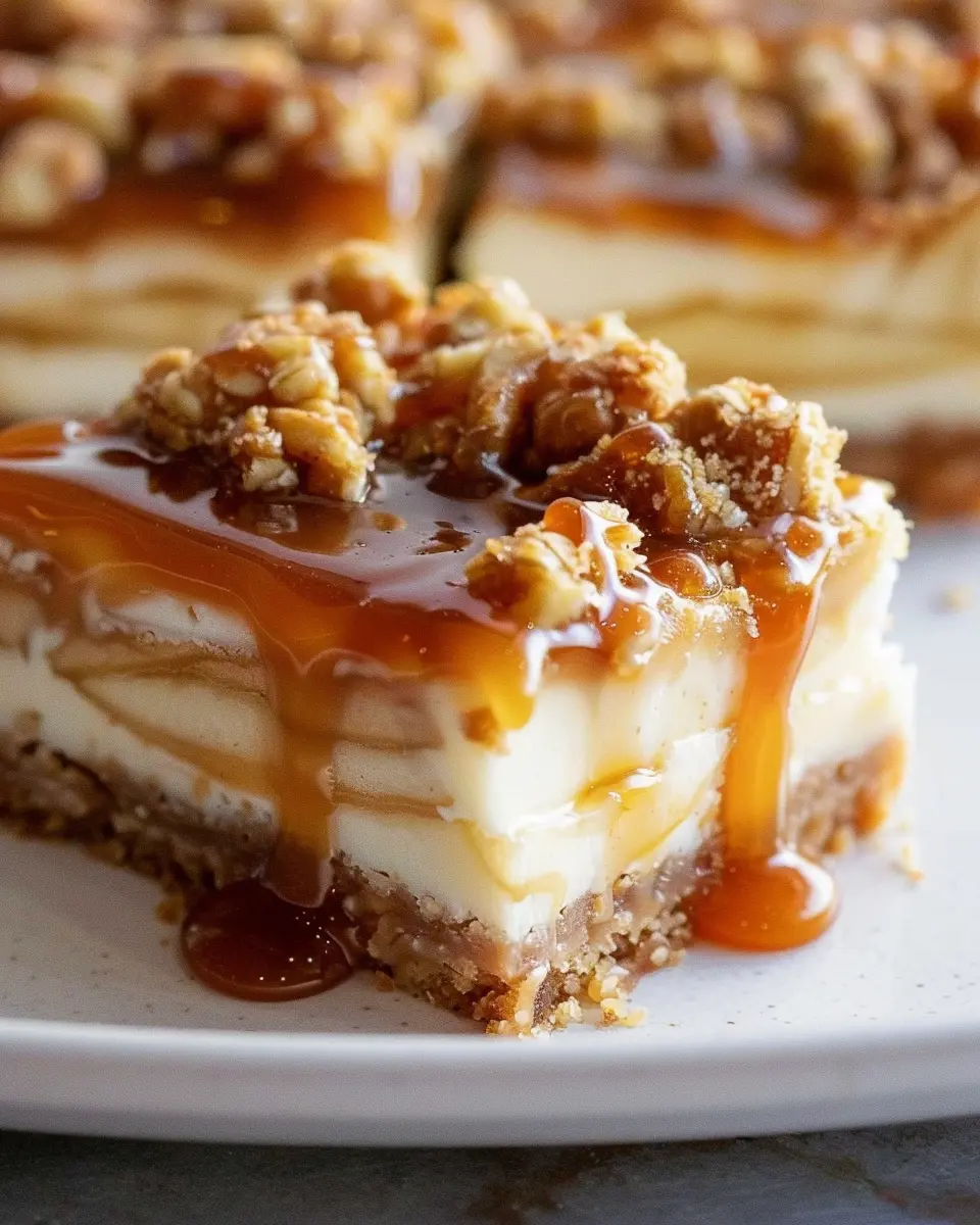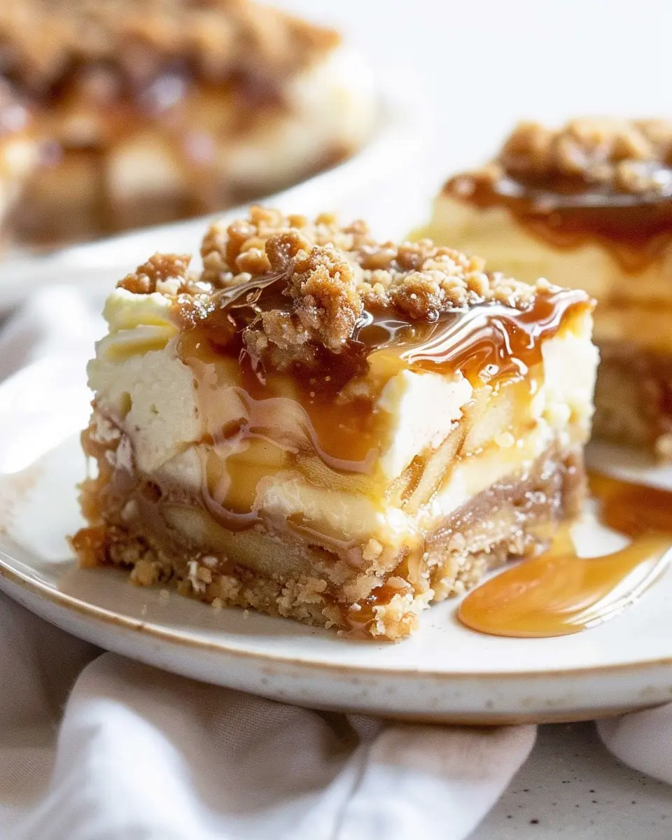 PrintCaramel Apple Cheesecake Bars Recipe: Indulgent Fall Delight
