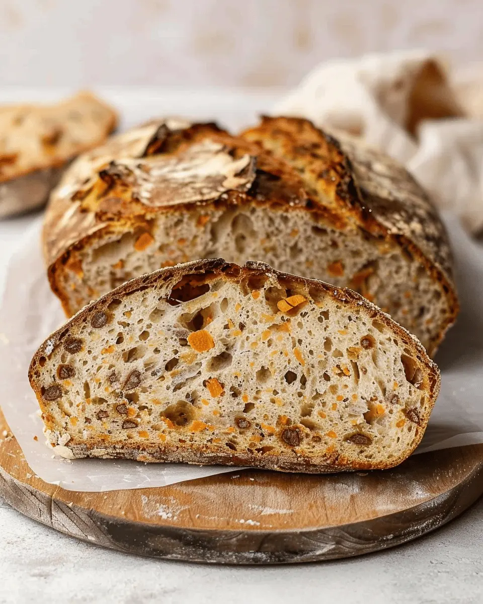 A unique blend of carrot cake and sourdough for a delightful bread experience.