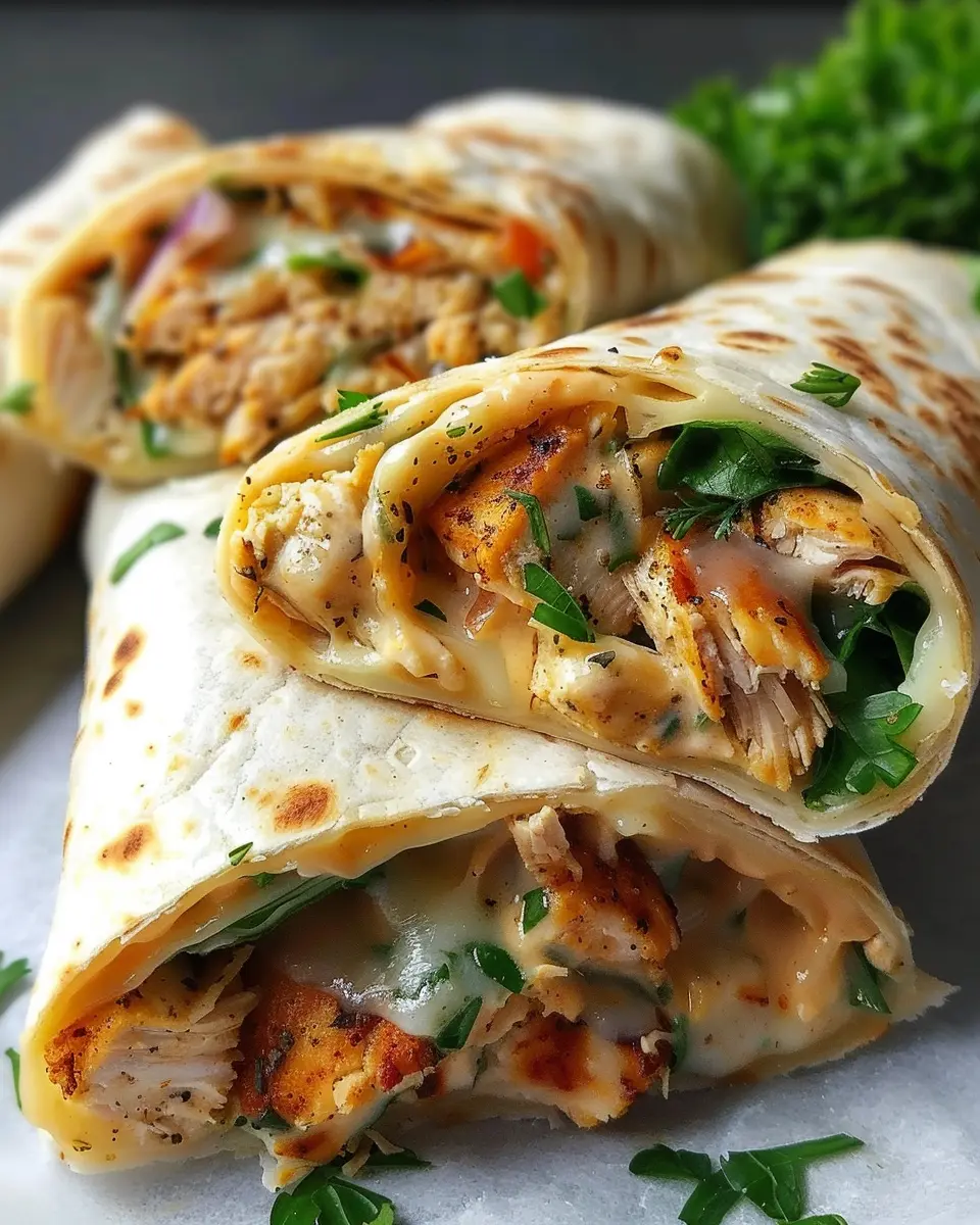 PrintCheesy Garlic Chicken Wraps: Easy Comfort Food for Everyone