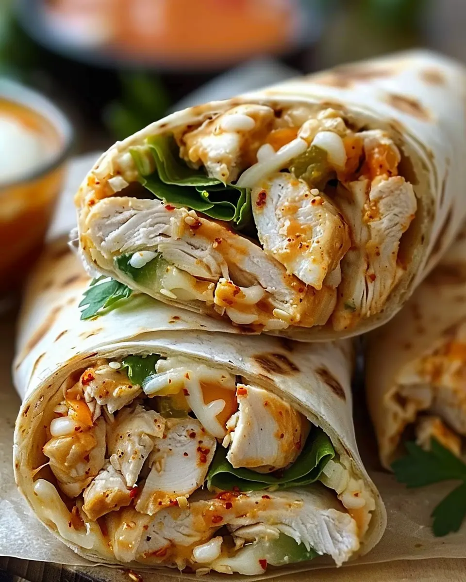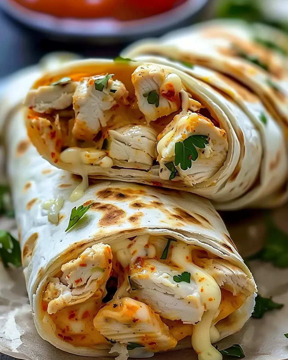 Spicy Cheesy Garlic Chicken Wraps