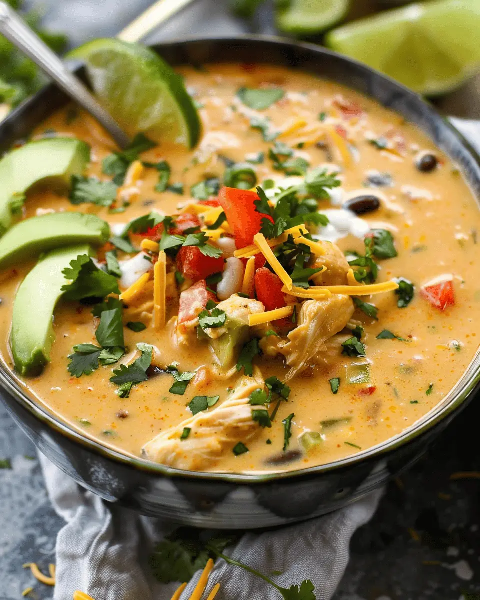 Now, let’s dive into the cheesy southwestern chicken tortilla soup. This dish is a delightful dance of bold flavors and textures, combining creamy cheese, tender chicken, and the warming spices typical of Southwestern cuisine. Imagine the smoky undertones of chipotle, the refreshing zing of lime, and a touch of heat from jalapeños—all perfectly wrapped in a rich, cheesy broth.