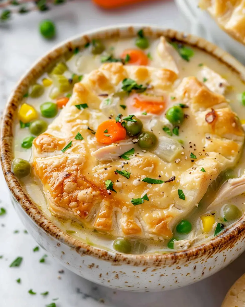 Absolutely! One of the great things about chicken pot pie soup is its versatility. You can prepare it a day or two in advance and store it in the refrigerator for a quick meal later. Just be sure to let it cool completely before transferring it to an airtight container. When you’re ready to enjoy, simply reheat it on the stove over medium heat, adding a splash of broth or water if it thickens too much upon cooling.