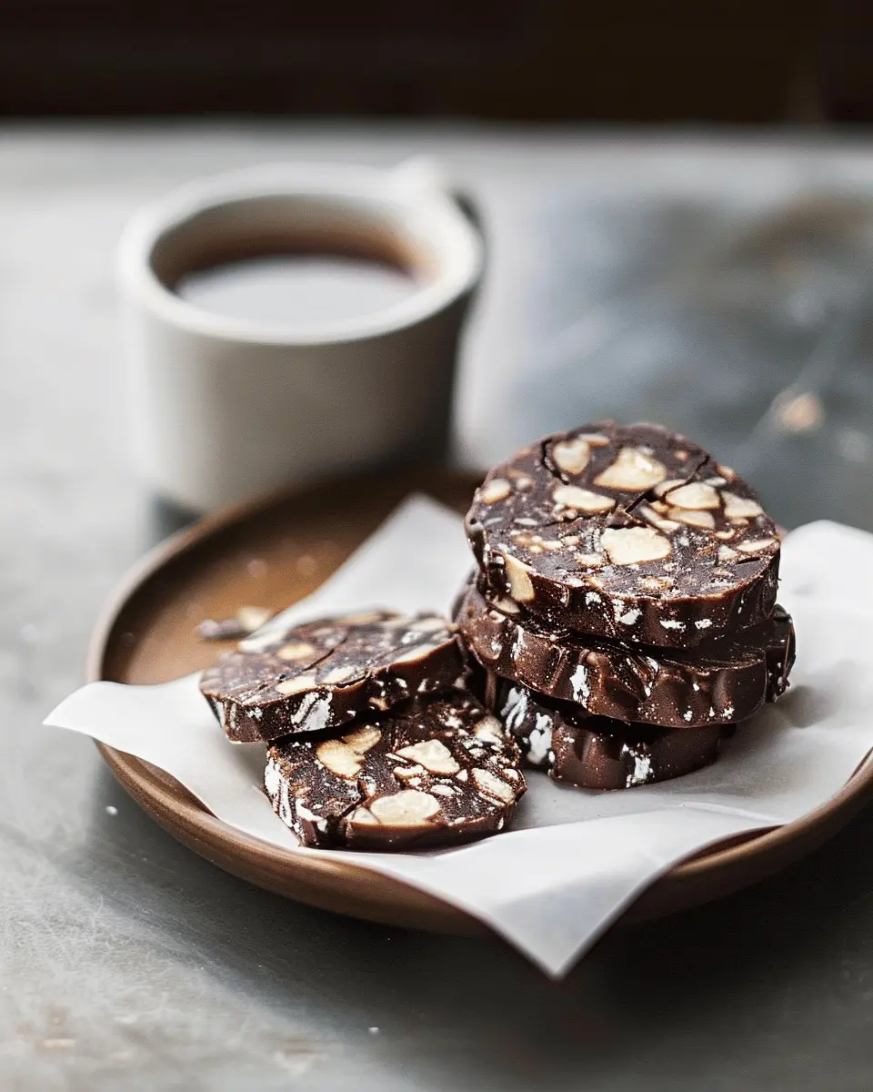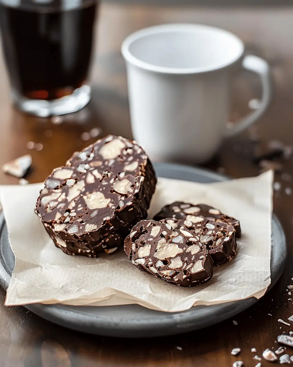 Consider serving your chocolate salami with a refreshing herbal tea or a rich coffee blend. The warmth of these beverages can enhance the chocolate flavors, creating a cozy atmosphere.