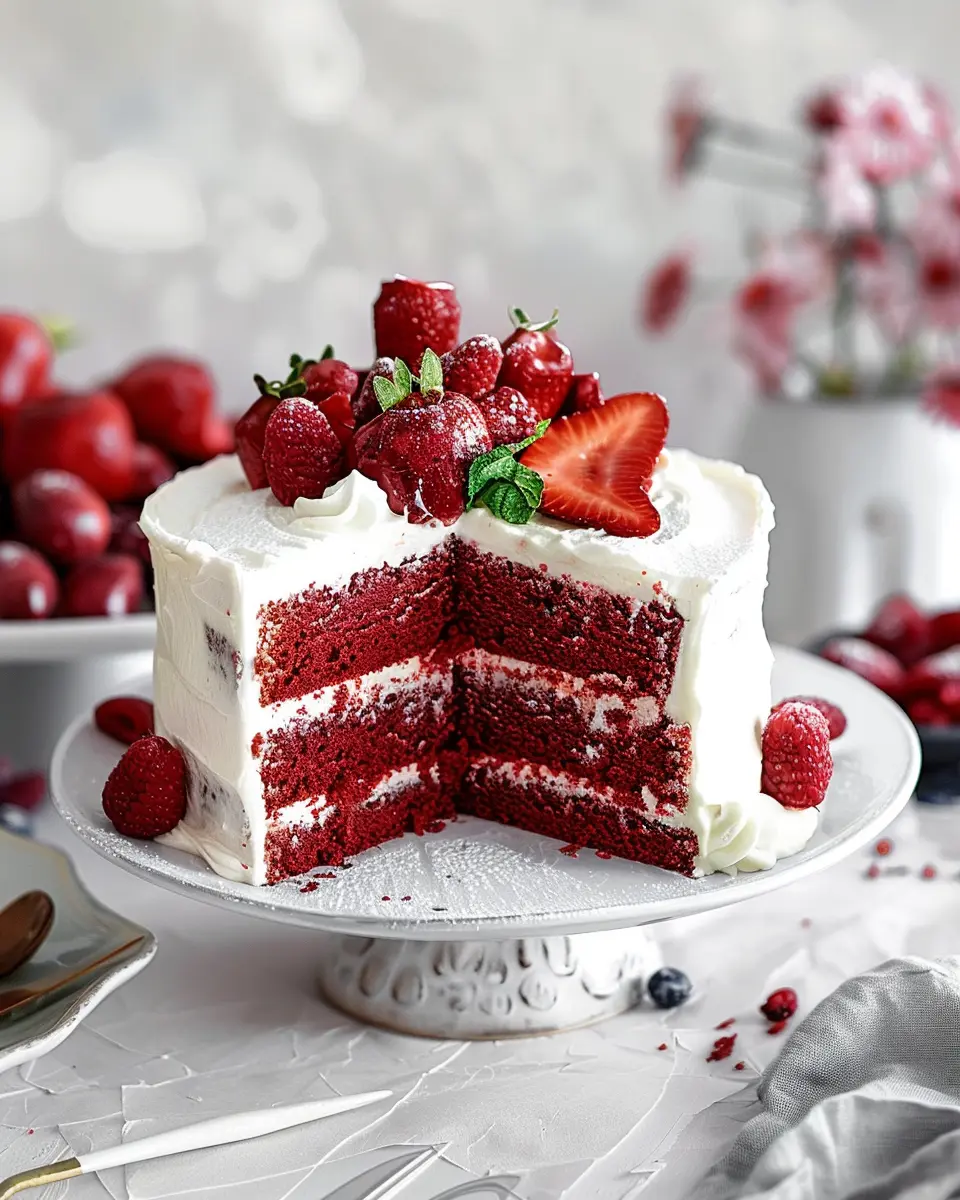 Whether it’s a cozy gathering or a festive celebration, these serving suggestions will make your Classic Red Velvet Cake a star on any dessert table.