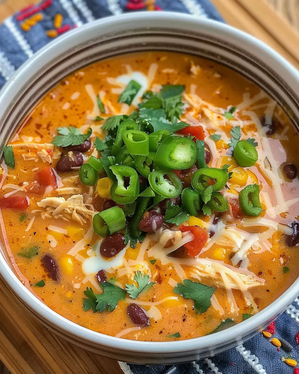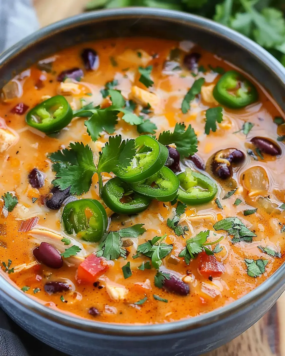 A warm and comforting soup that’s perfect for cold days, combining tender chicken, enchilada flavors, and creamy goodness.