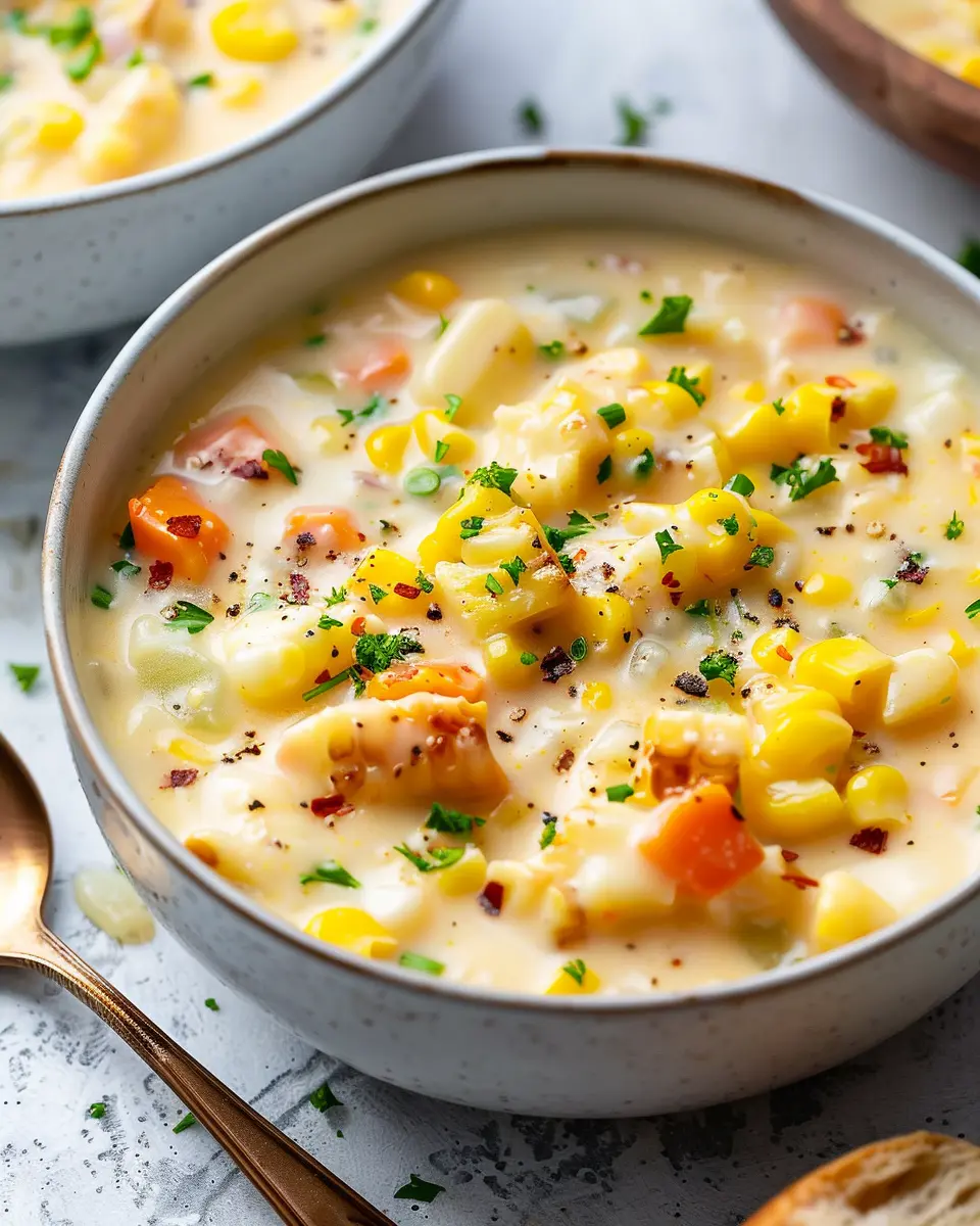 Nutritional Benefits: Corn is a whole grain that provides important nutrients like fiber, vitamins, and antioxidants. When combined with other ingredients, this chowder not only satisfies your cravings but also contributes to a balanced diet. According to the USDA, a cup of corn can provide about 18% of your daily fiber needs.