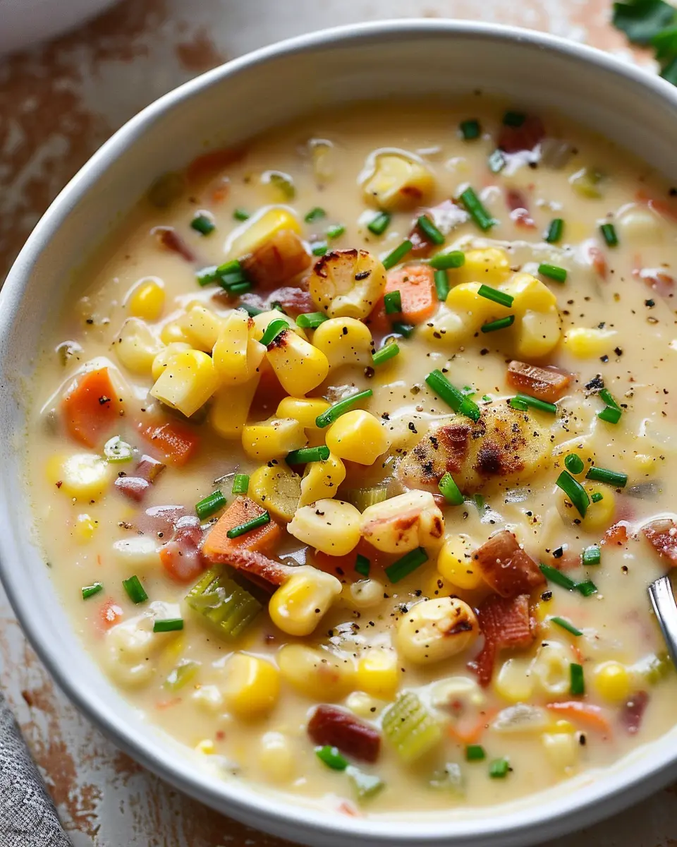 Keywords: Creamy Corn Chowder, Turkey Bacon, Comfort Food