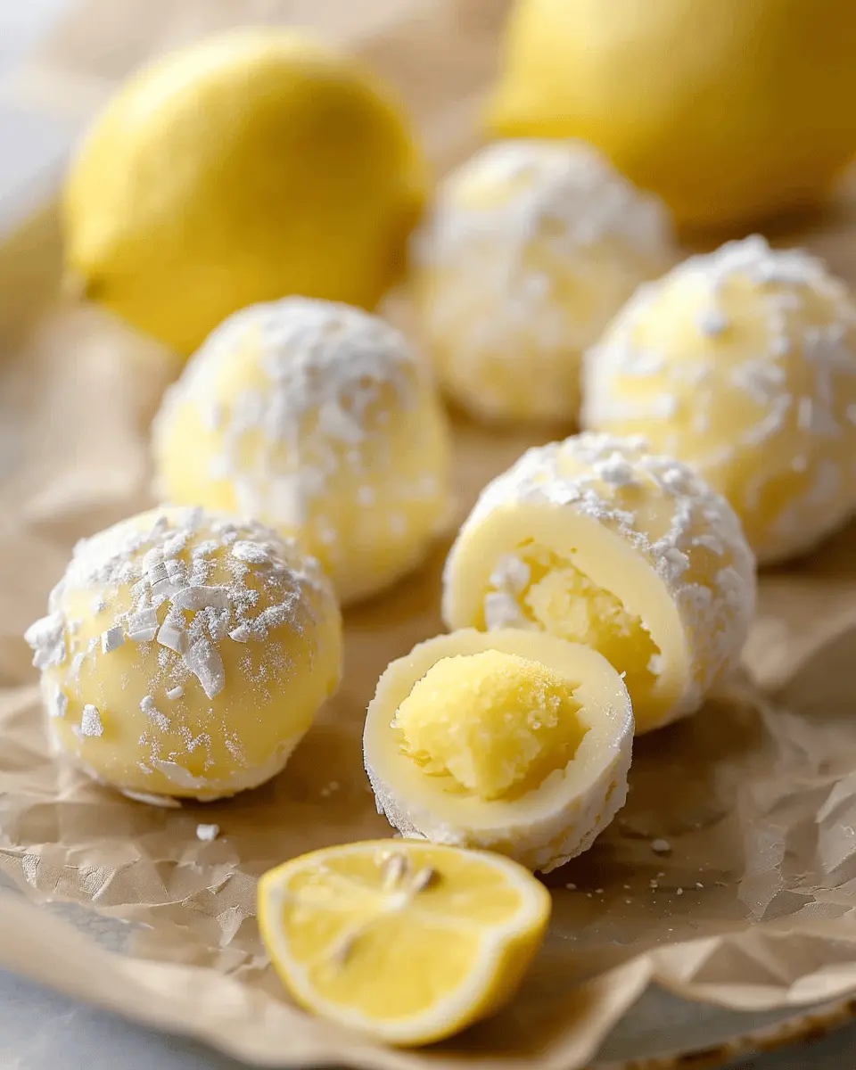 • Instructions: Once you’ve prepared the classic creamy lemon filling, fold in a generous amount of shredded coconut before coating the truffles.