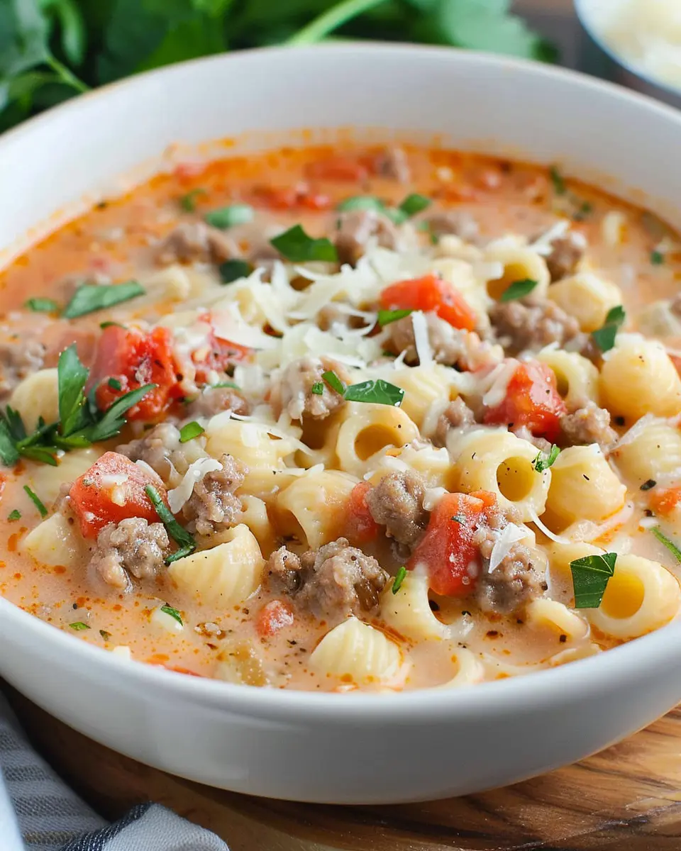 A comforting and creamy soup featuring savory Italian sausage and ditalini pasta.