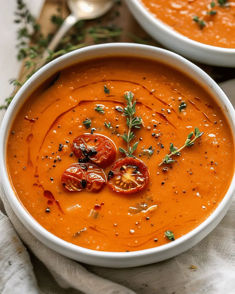 Once your ingredients are ready, the cooking time is about 30 minutes. During this phase, you’ll roast your garlic and tomatoes, allowing their flavors to deepen. After blending everything into a smooth, creamy concoction, a little simmering brings it all together, creating that comforting flavor we love.