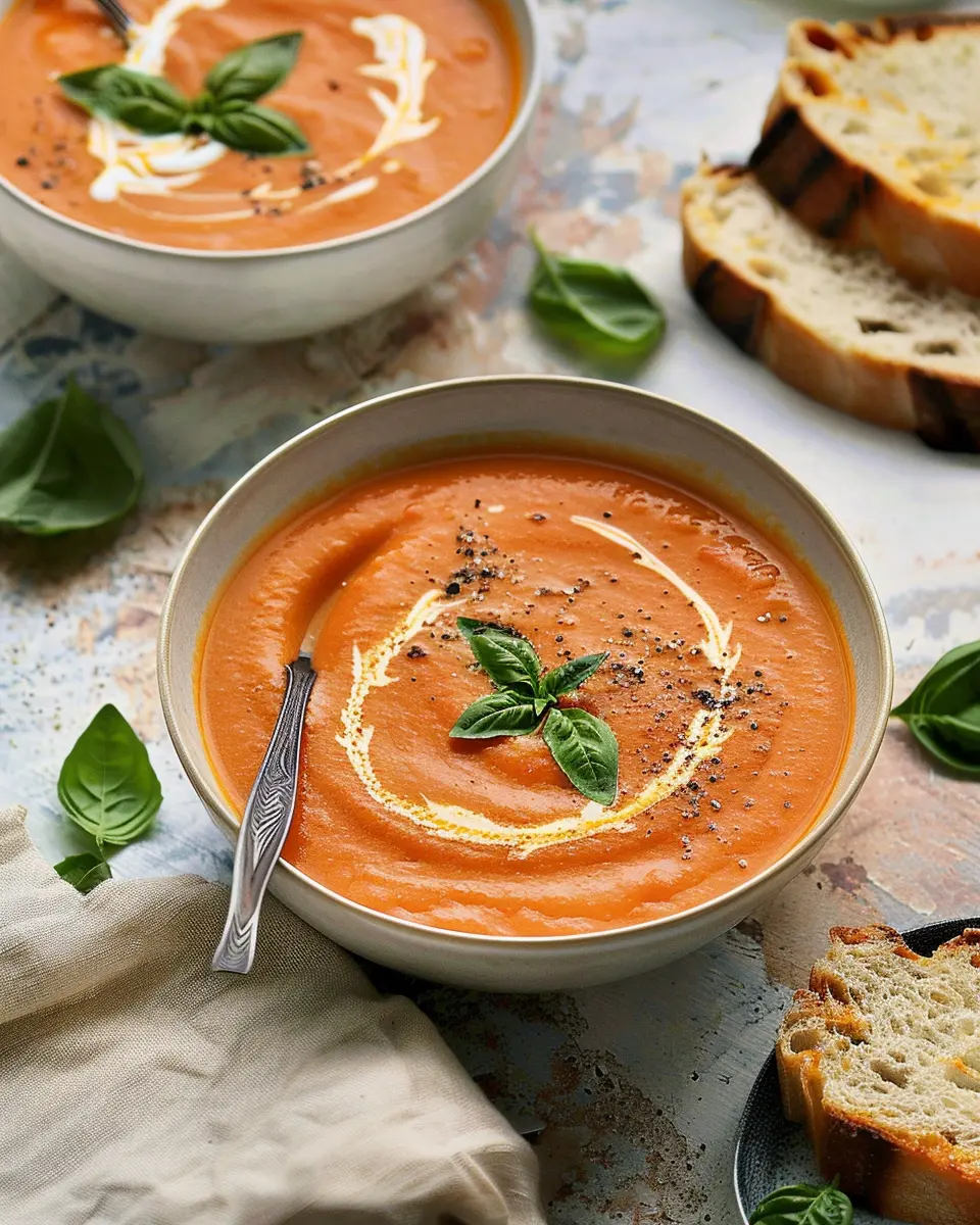 This creamy roasted tomato soup is the perfect cozy dish for chilly evenings, combining the rich flavors of roasted tomatoes with a luscious cream base.