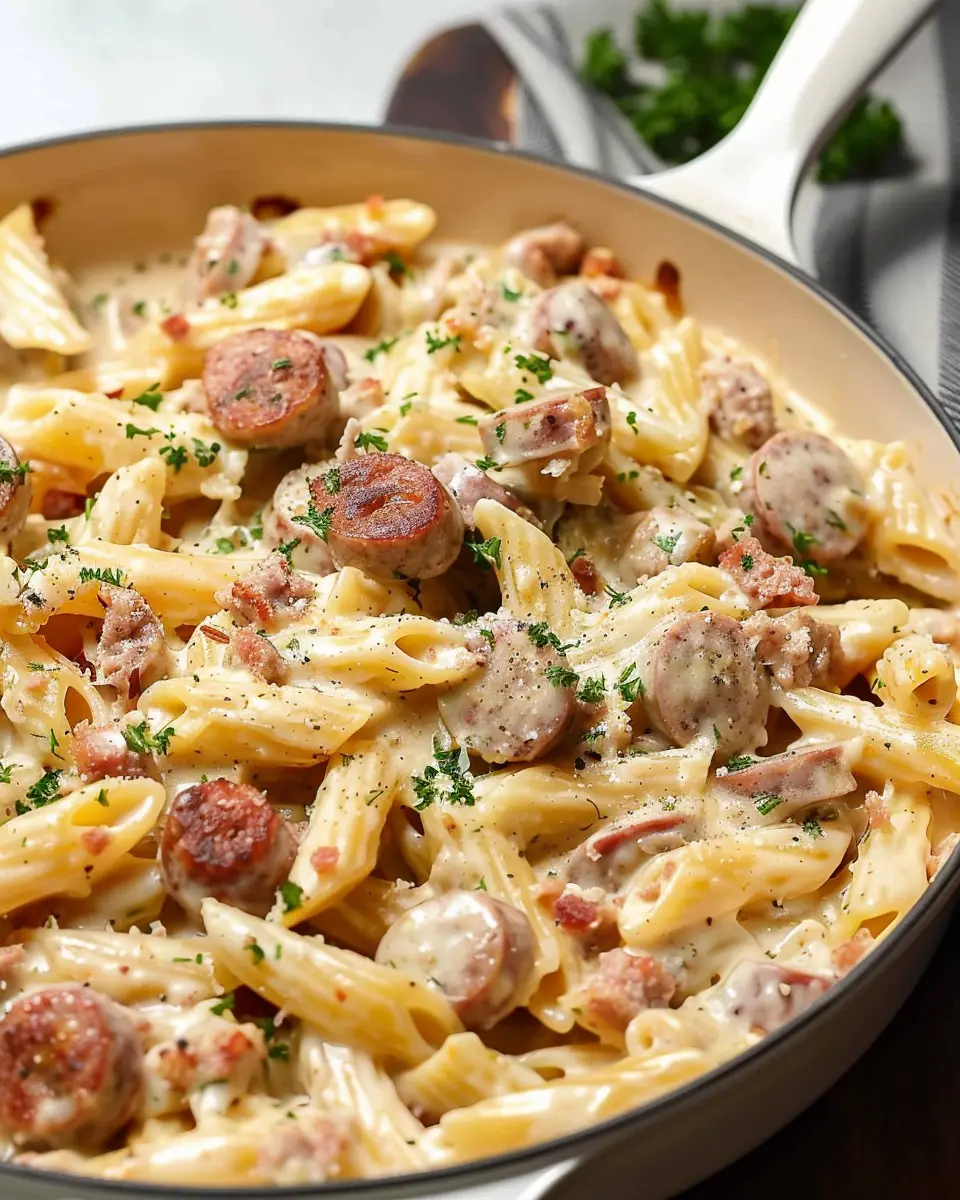 PrintCreamy Smoked Sausage Pasta Recipe: A Delightfully Easy Dish