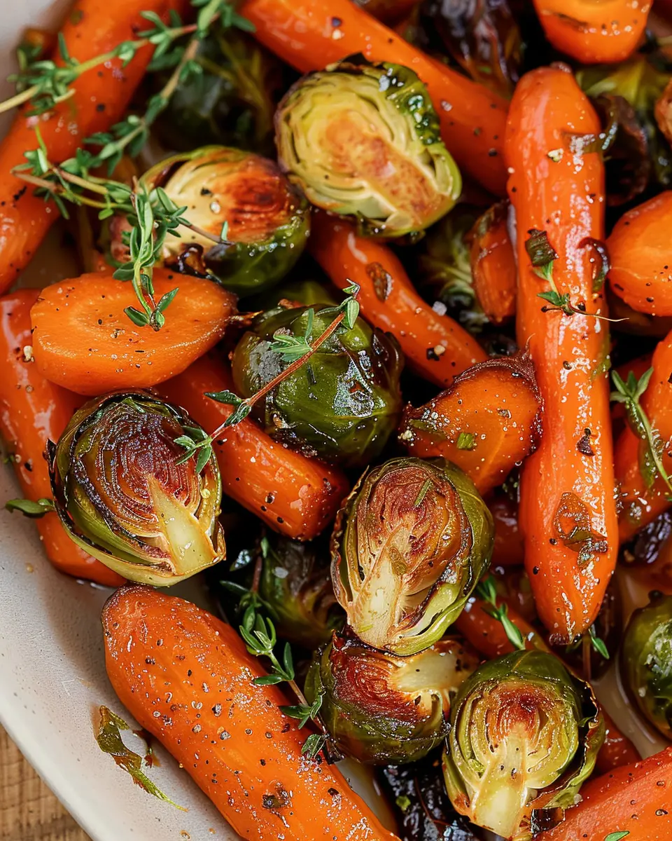 Crispy Maple Glazed Carrots and Brussel Sprouts: A Delightful Veggie Treat