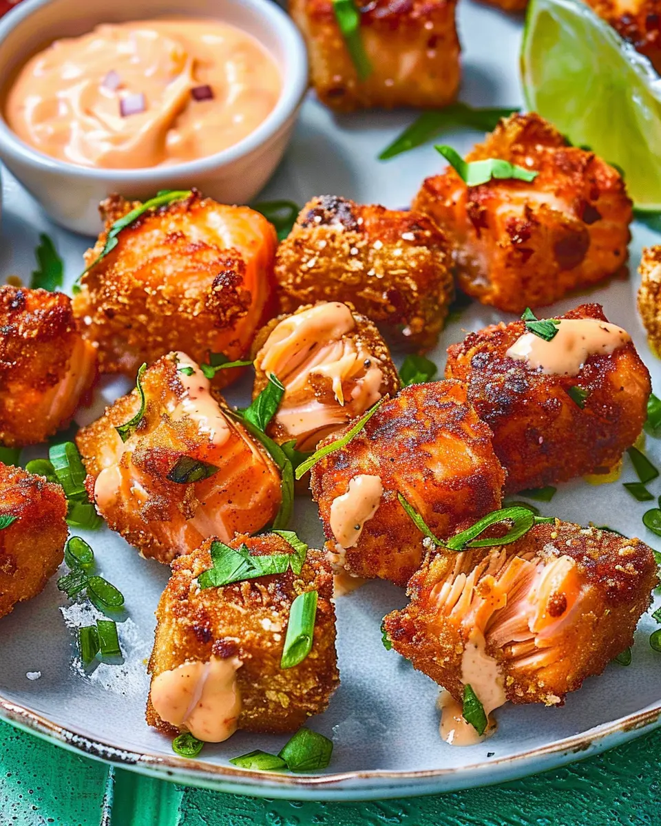 Delicious and quick-to-make crispy salmon bites that the whole family will love. Paired with a tangy sauce for a perfect appetizer or meal.