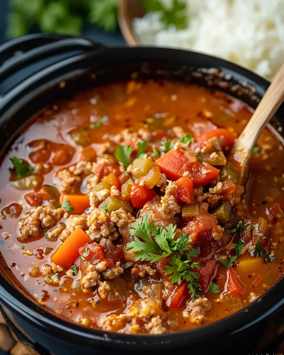 If you’re craving a spicy twist, why not go for a Mexican-inspired Crockpot Stuffed Pepper Soup? This variation adds a kick to the classic recipe with vibrant flavors and ingredients.