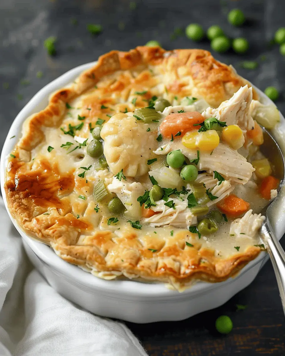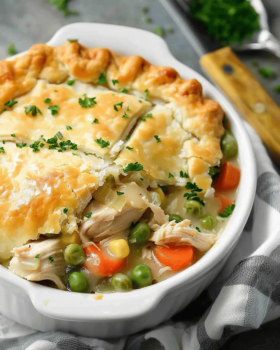 A comforting and easy-to-make chicken pot pie that is perfect for family dinners.