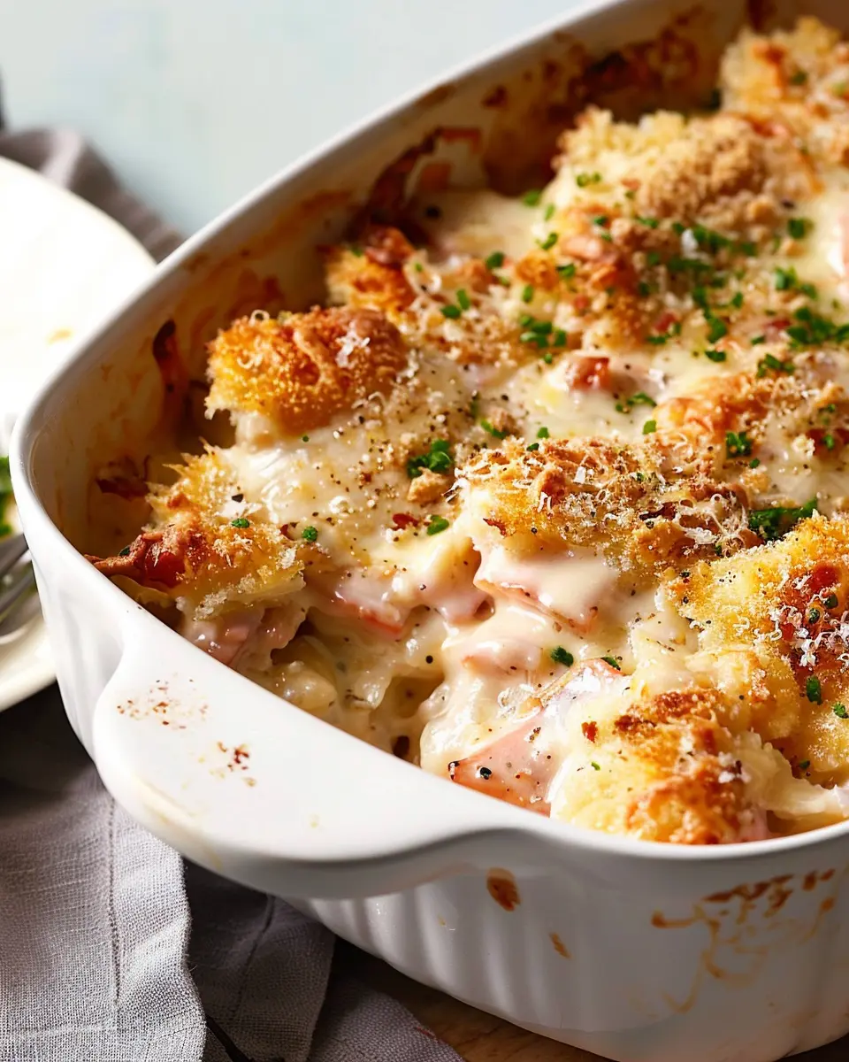 - Layer Wisely: Evenly distribute your chicken ham and turkey bacon throughout the casserole for balanced flavor in every bite.