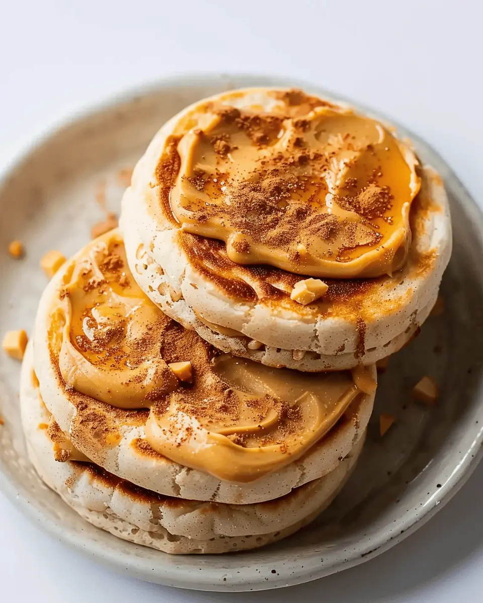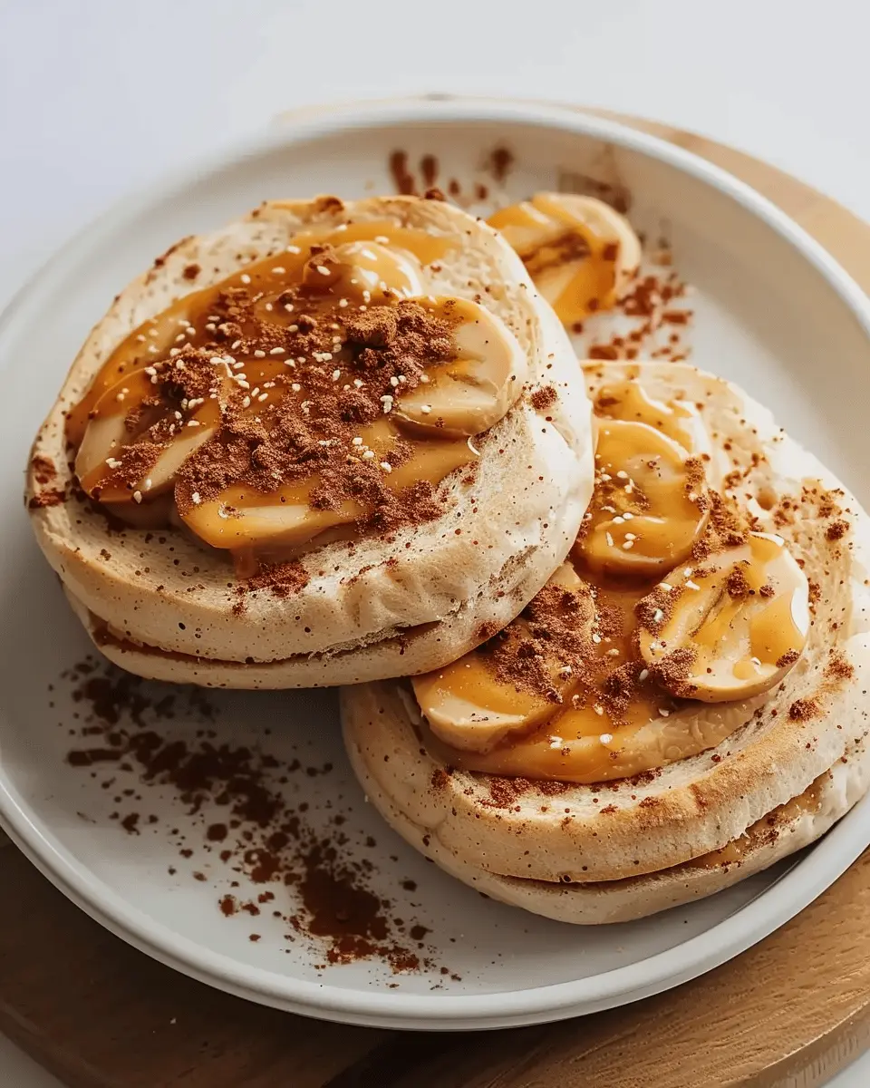 Discover the perfect combination of English muffin and peanut butter for a delightful breakfast experience.