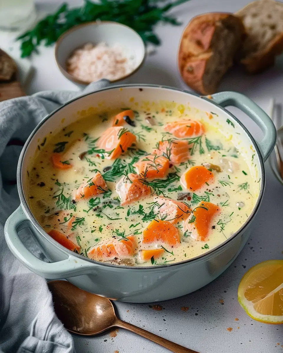 Enjoy a warm and hearty Finnish Salmon Soup that brings comfort to your cozy nights.