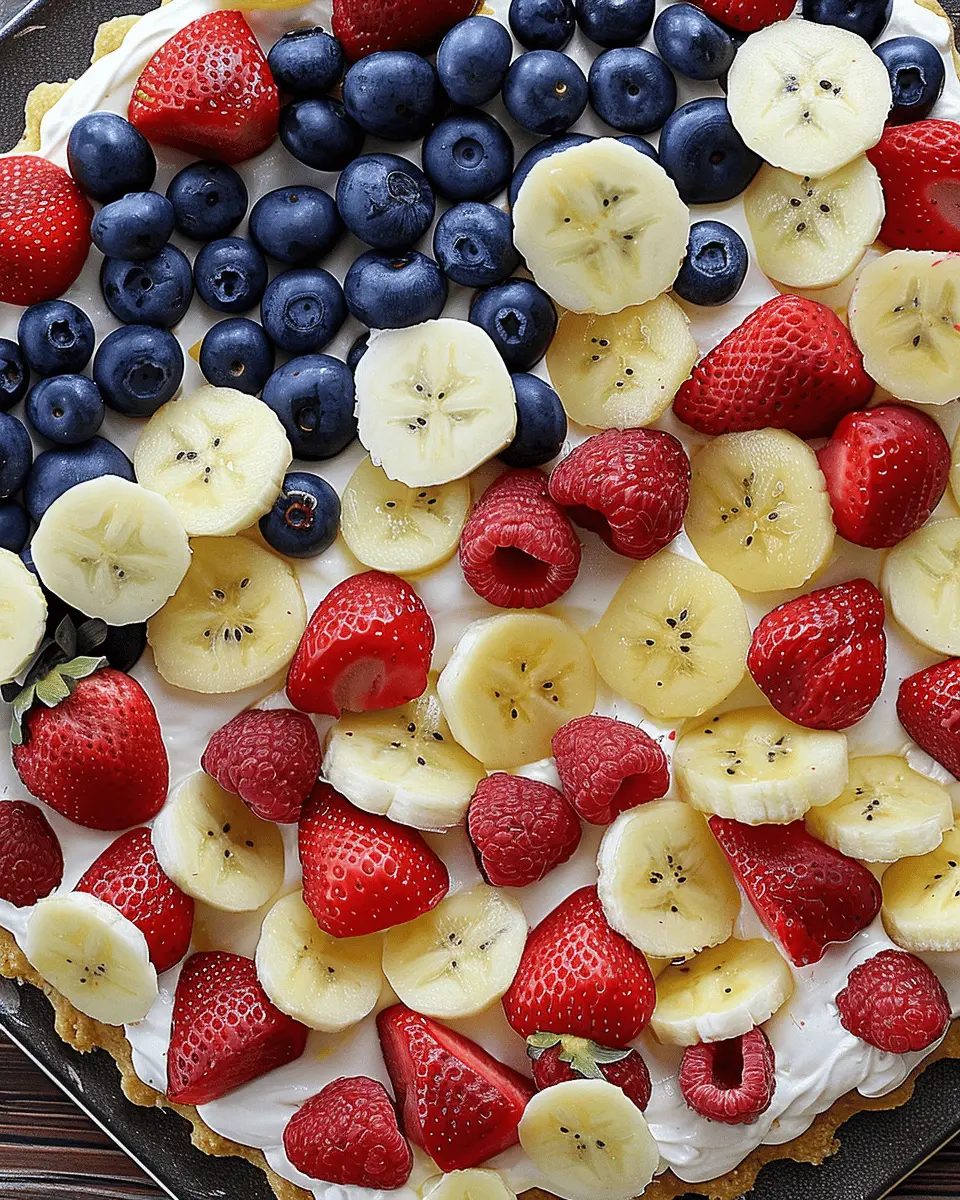Making this dessert allows you to experiment with your favorite fruits and customize the recipe to suit your taste. Plus, it’s a fantastic way to encourage healthy eating while indulging your sweet tooth. The blend of a sugar cookie base with creamy toppings and seasonal fruits really makes it a standout.