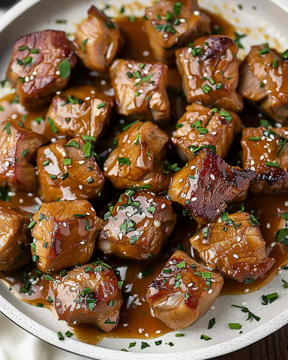 PrintGarlic Pork Bites: Easy Beef Appetizer for Flavor Lovers