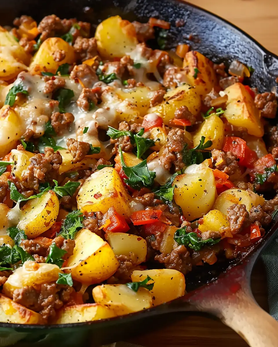 In wrapping up our delicious journey with the loaded ground beef and potatoes skillet, it’s clear this dish is more than just a meal; it’s a crowd-pleaser that fits any occasion. It’s quick to prepare and packed with flavors, making it ideal for busy weekdays or casual gatherings with friends. The combination of seasoned beef, tender potatoes, and your choice of toppings means you can customize it every time you make it. So why not give it a try this week? You’ll not only enjoy a satisfying dish but also create some memorable mealtimes.