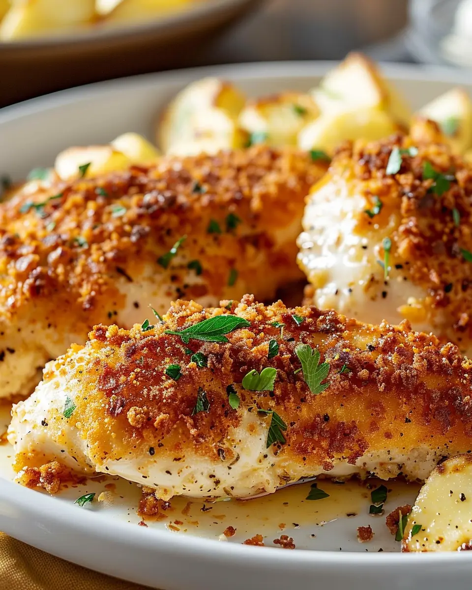 Simply combine panko breadcrumbs with a sprinkle of the remaining Italian herbs and some salt. Press this mixture onto your coated chicken to ensure it sticks well.