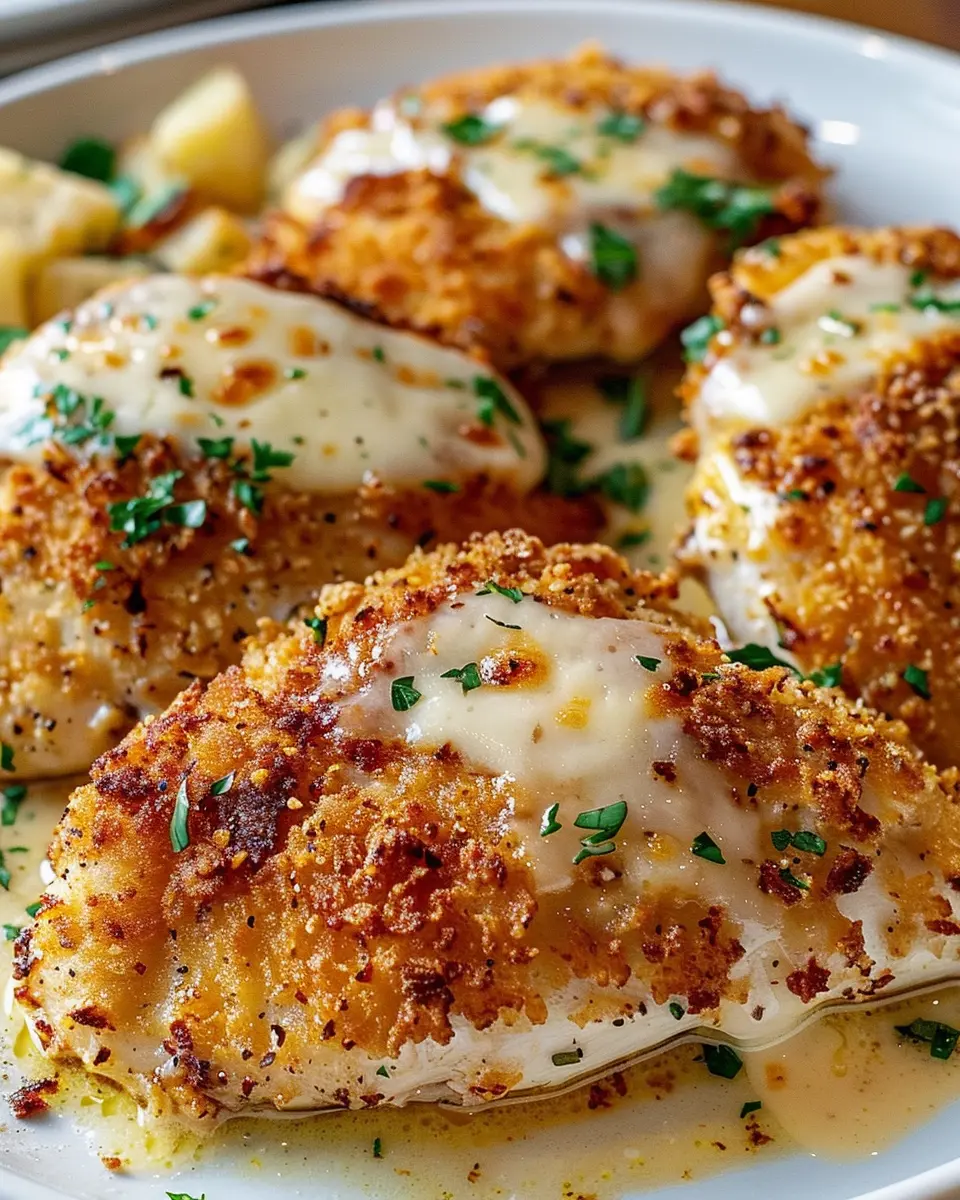 - Crispy Coating: The chicken is coated with a blend of breadcrumbs and Parmesan cheese, lending a satisfying crunch and rich flavor.
