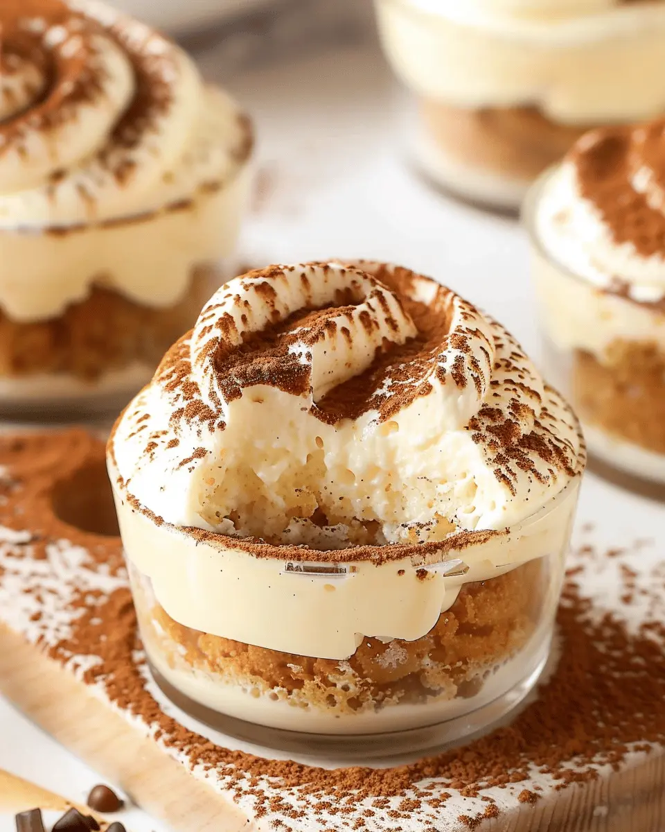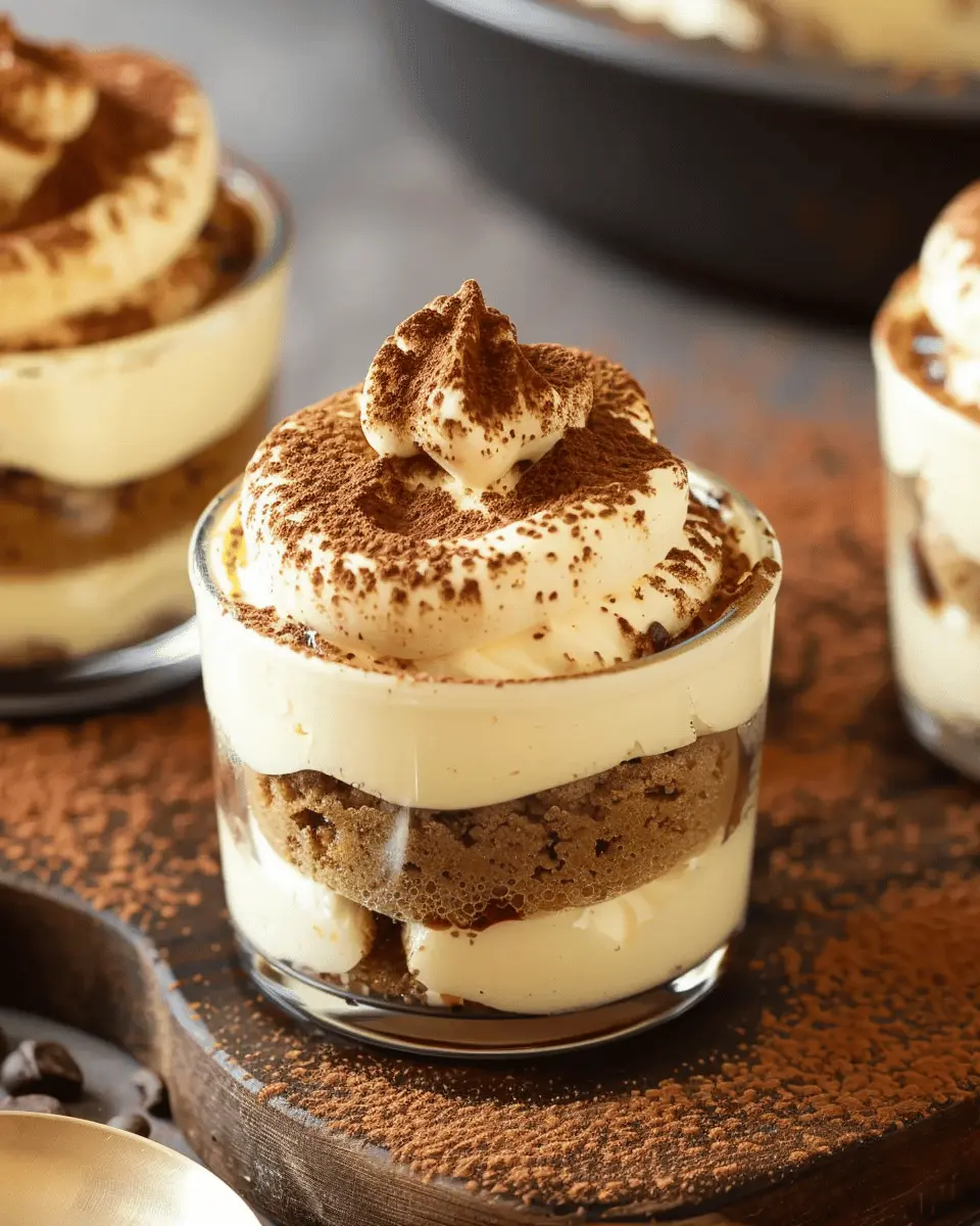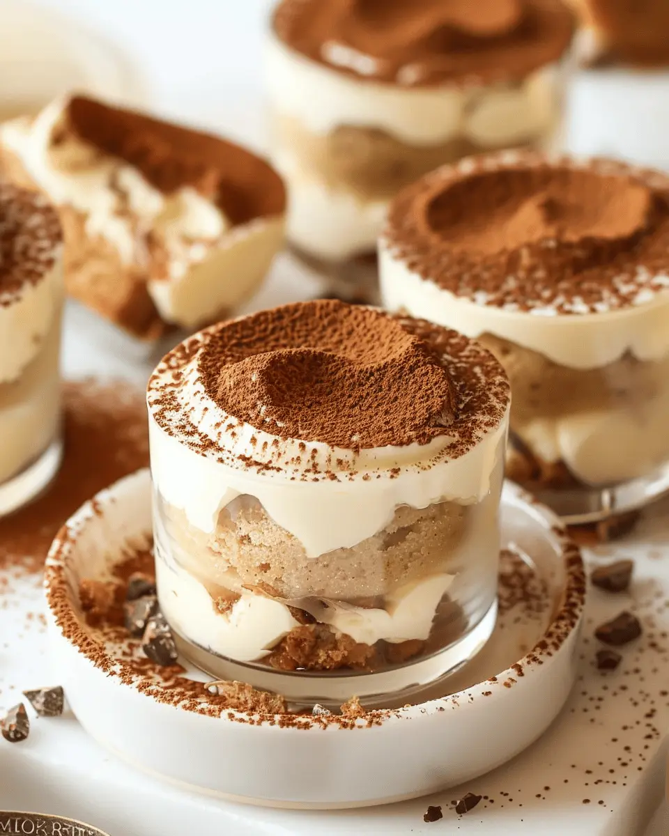 • Before serving, dust the tops with cocoa powder for that classic tiramisu finish.