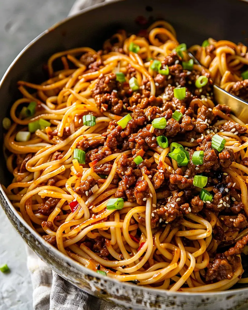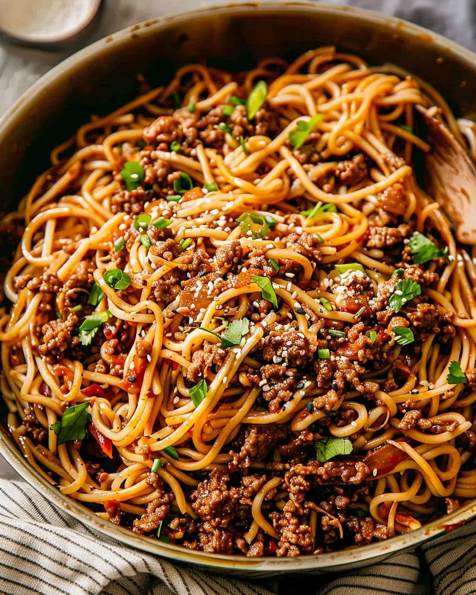 A quick and easy recipe for Mongolian ground beef noodles that combines savory flavors and simple preparation.
