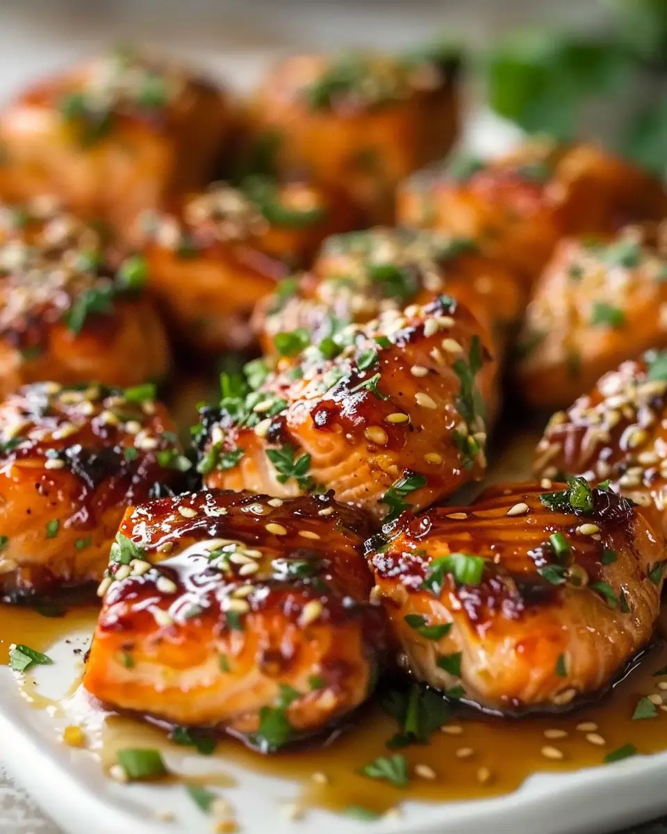 • Plating: Arrange the sweet, fragrant salmon bites on a serving platter or individual plates.