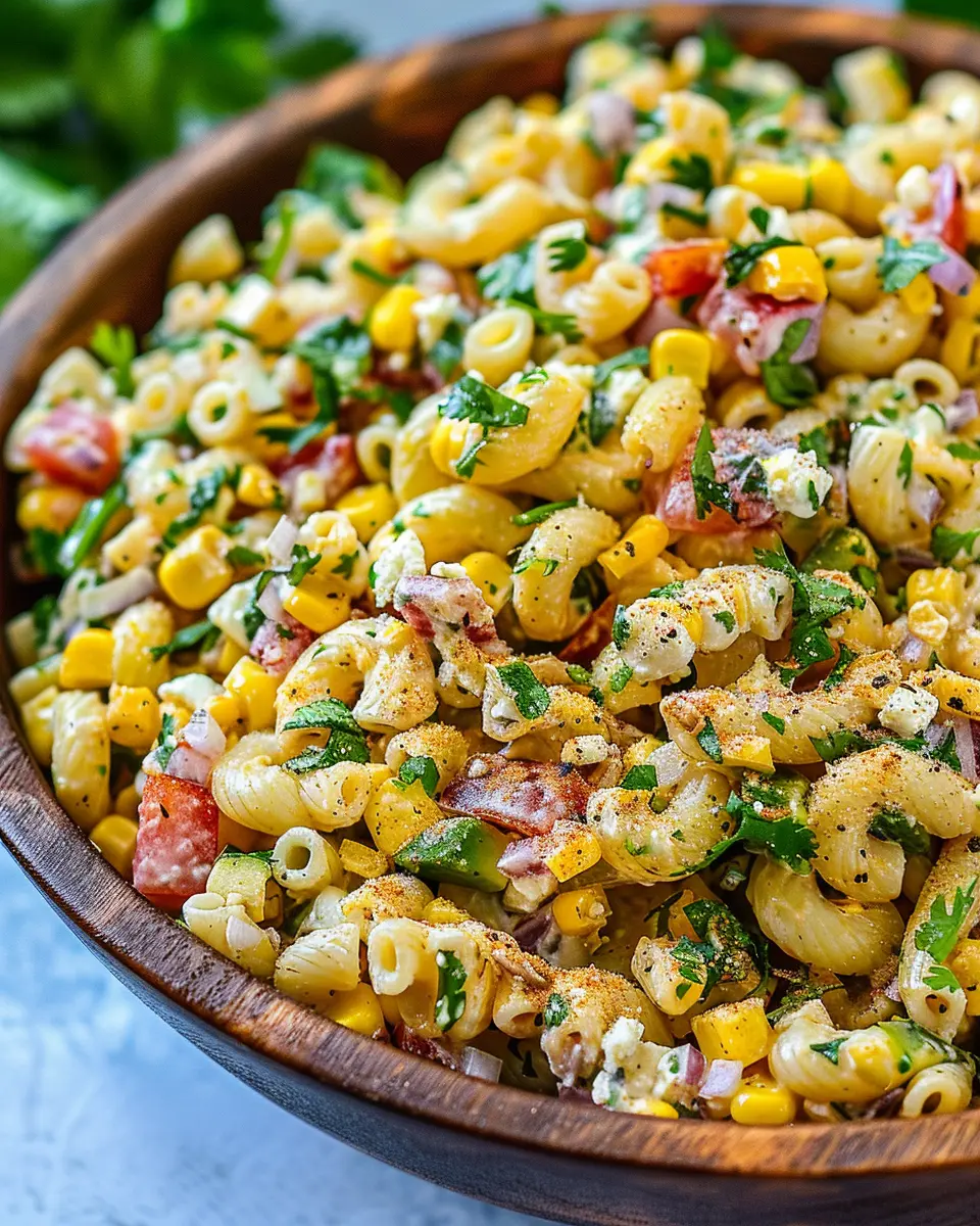 Perfect Mexican Street Corn Pasta Salad with Turkey Bacon Delight