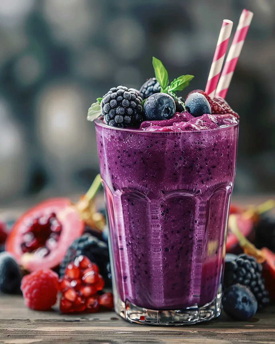 If you’re looking for a purple smoothie that packs a protein punch, this recipe is your go-to. It’s ideal for post-workout recovery or an energizing breakfast.