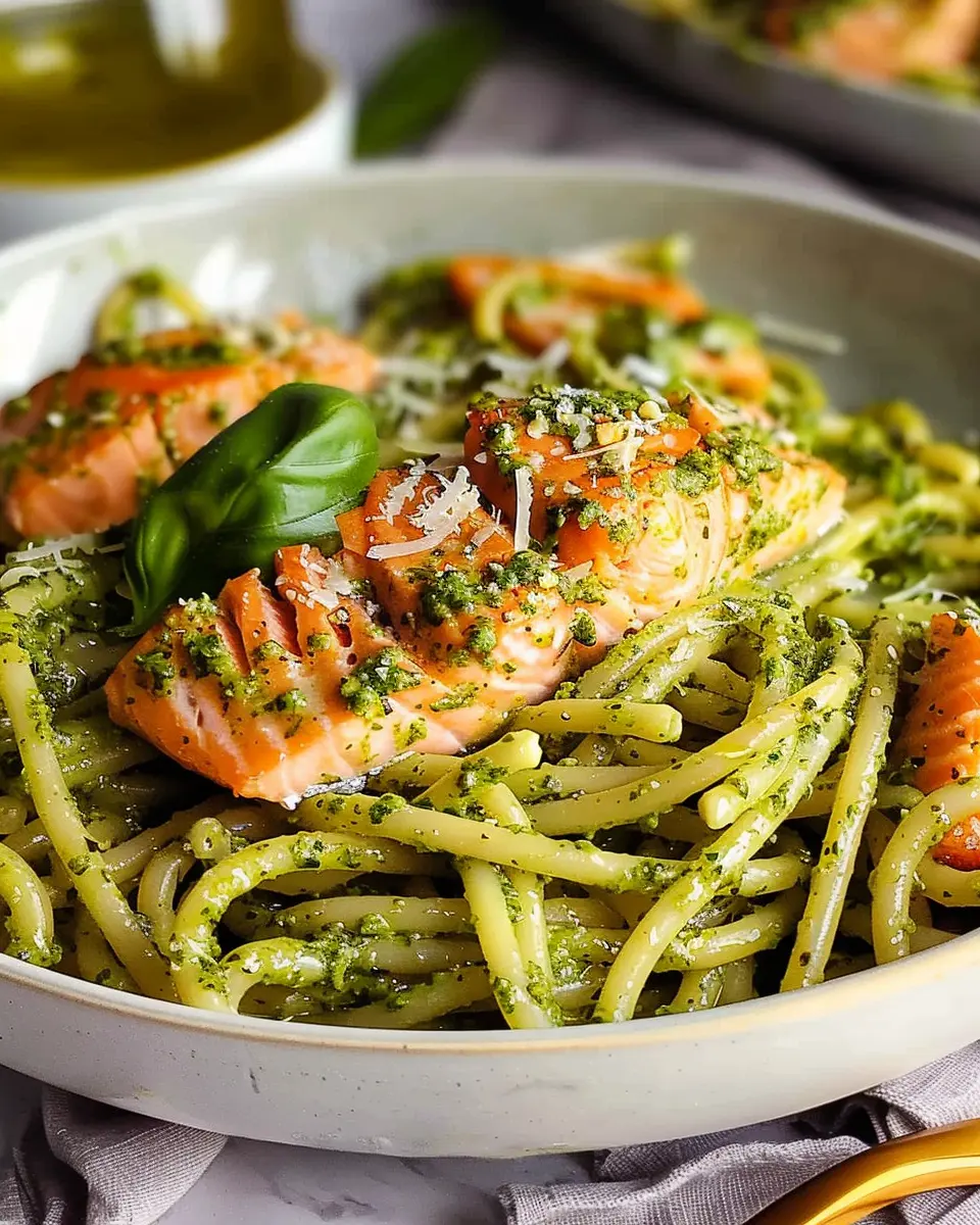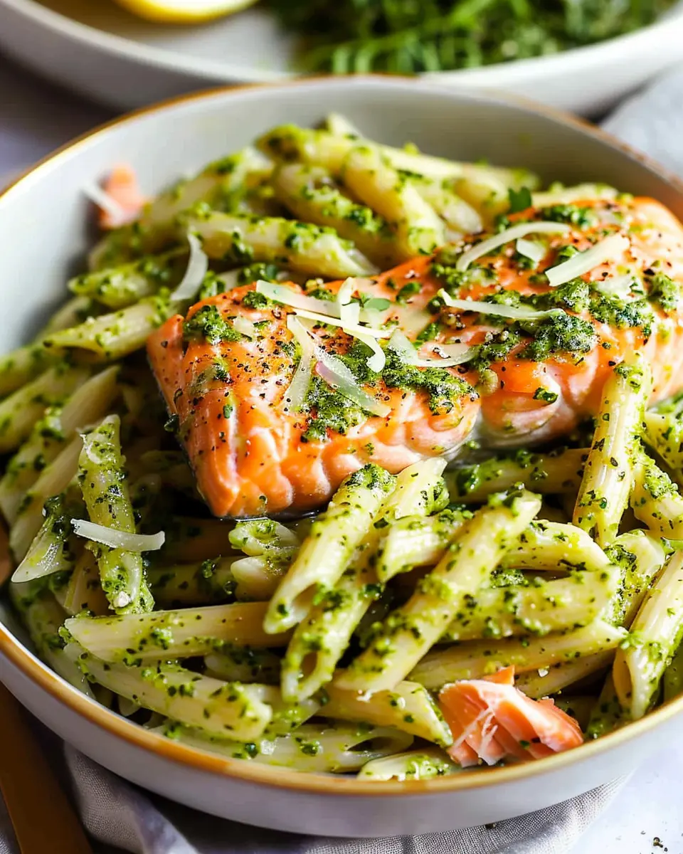 A delicious and nutritious salmon pesto pasta recipe that’s quick to prepare and rich in flavor.