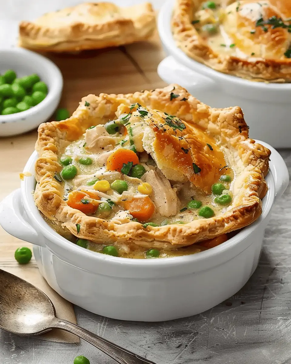 Don’t fret if you’re not eating meat; a delectable vegetarian chicken pot pie can be made using plant-based proteins like chickpeas or lentils. You can replace the chicken with a variety of vegetables such as zucchini, carrots, and peas. Opt for vegetable broth to keep it hearty. The best part? It’s just as comforting and satisfying as the traditional version!