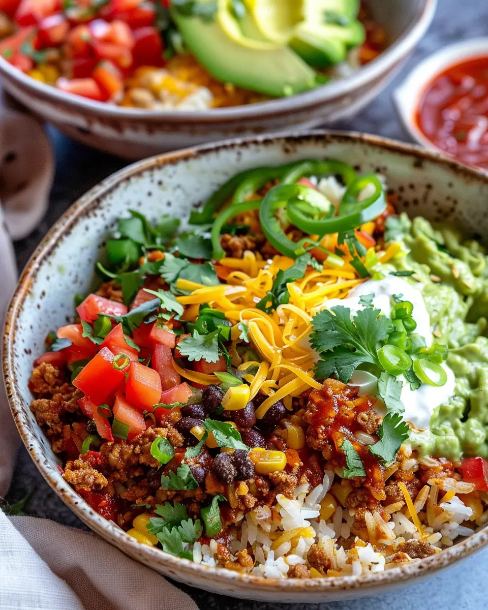 In just a few simple steps, you can create a wholesome taco rice bowl bursting with flavor and texture. This dish is super customizable, ensuring that everyone can create their perfect bowl, whether they’re into extra spice or extra cheese. Don’t hesitate to share your experiences or ask questions in the comments! Enjoy crafting your taco rice bowl masterpiece.