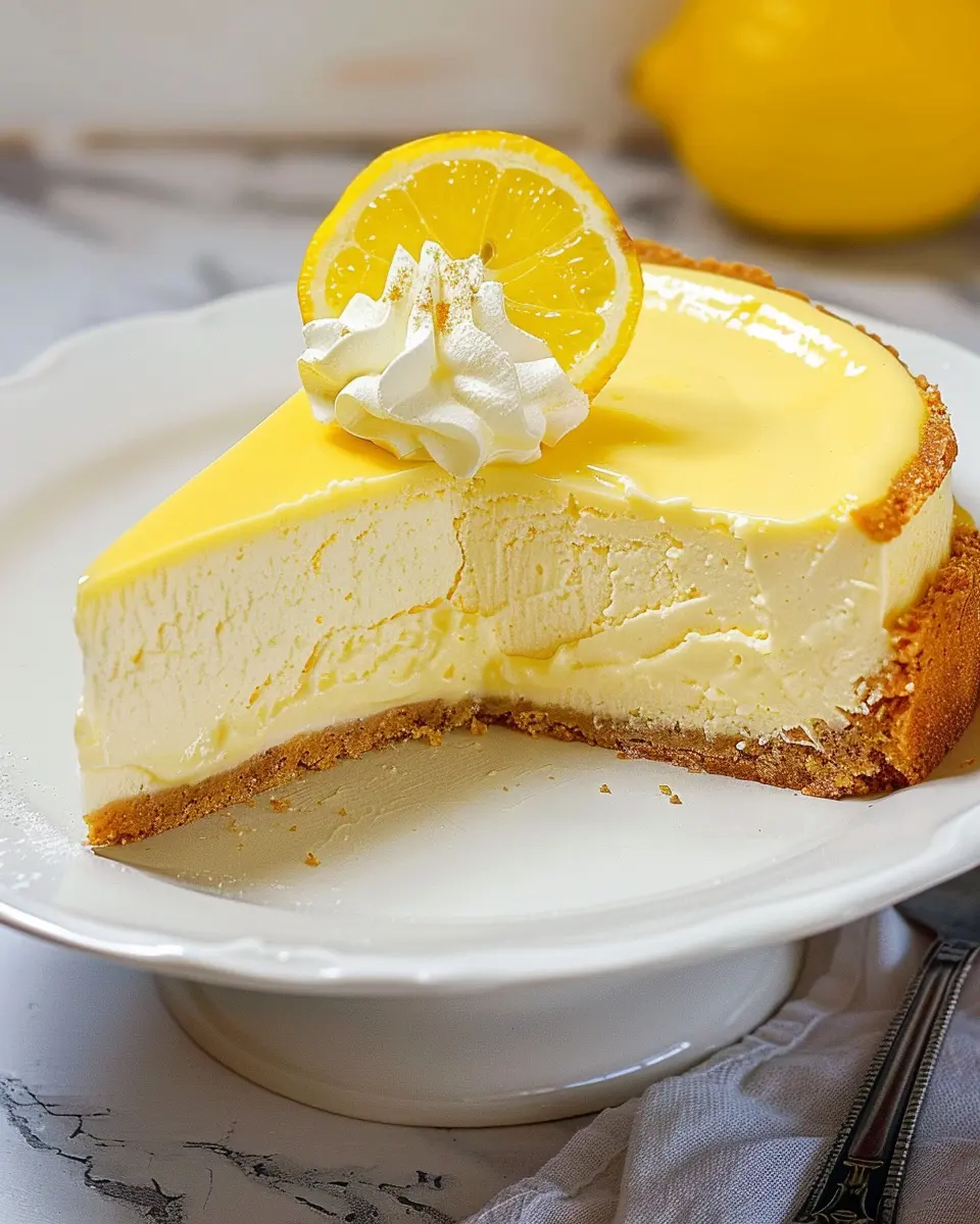 Indulge in this rich and creamy lemon cheesecake that combines a buttery crust with a tangy lemon filling, perfect for any dessert lover.
